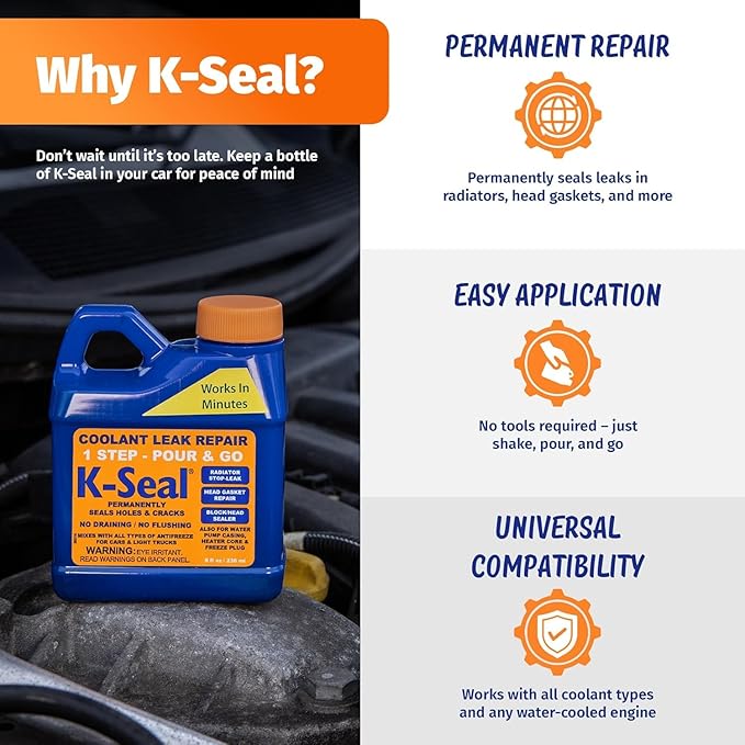 - EASY TO USE: K-Seal couldn't be simpler to use & requires no draining or flushing; just shake, pour & go - shake the bottle, add the fluid to your coolant system & run your engine as normal