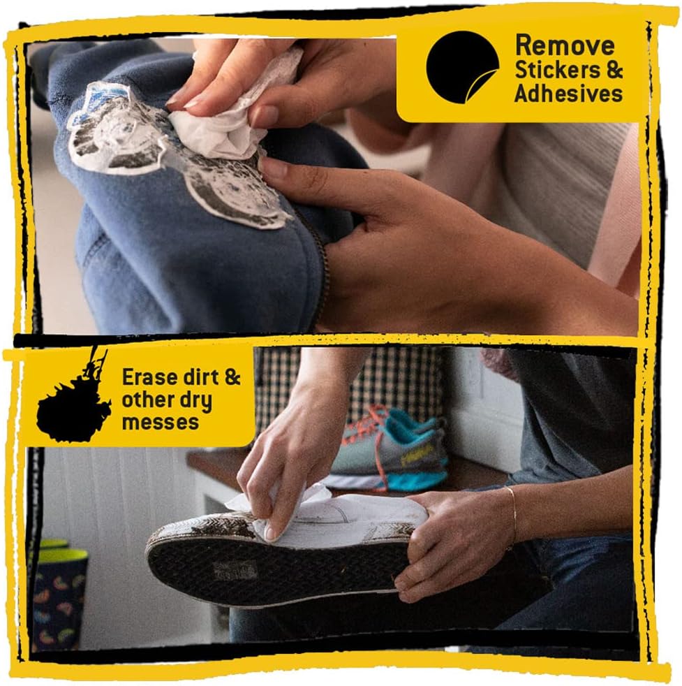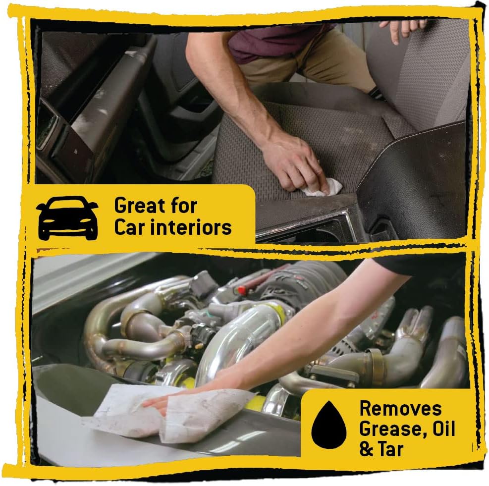 - Removes heavy stains others won't including: grease, tar, ink, paint, permanent marker, wax, scuffs, lip stick, nail polish, food and drinks, pet stains and more.