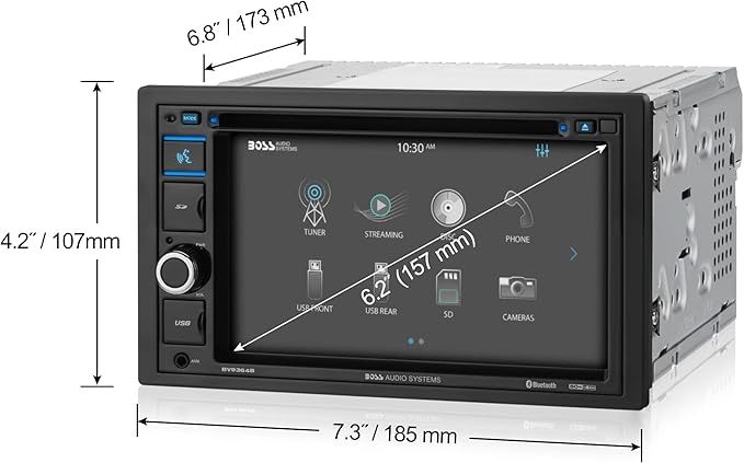 BOSS Audio Systems BV9364B Car Stereo DVD Player - Double Din, Bluetooth Audio/Hands-Free Calling, 6.2 Inch Touchscreen LCD Monitor, MP3 Player, CD, DVD, USB Port, SD, AUX Input, AM/FM Radio Receiver