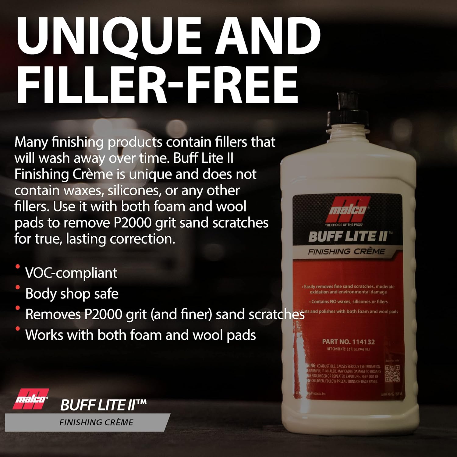 - LIGHT COMPOUND: Buff Lite II Finishing Crème is a light compound designed to remove 1500-grit and finer sand scratches from your vehicle and leave automotive finishes free of swirl marks.