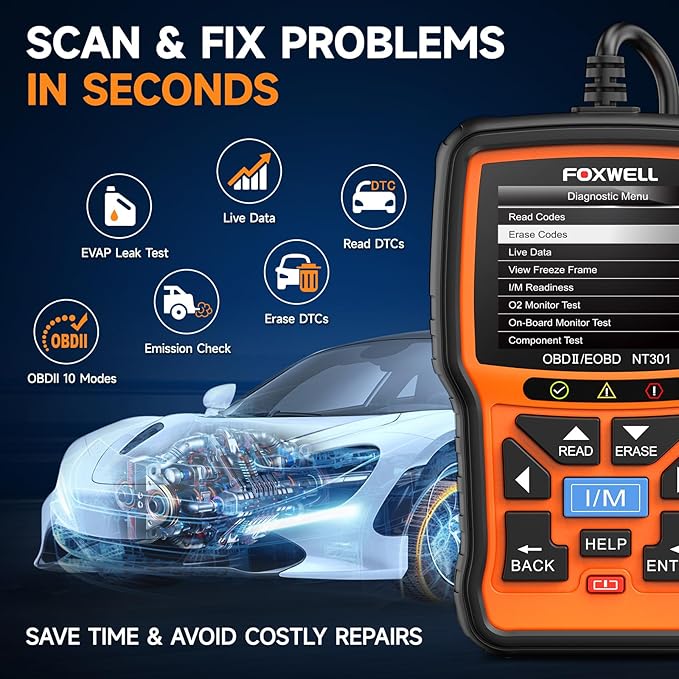 FOXWELL NT301 OBD2 Scanner Live Data Professional Mechanic OBDII Diagnostic Code Reader Tool for Check Engine Light