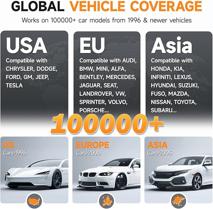 - [OBDII Protocols & Compatibility] The NT301 supports OBDII protocols like KWP2000, J1850 VPW, ISO9141, J1850 PWM and CAN. The device is compatible with 1996 US-based, 2000 EU-based and Asian cars, light trucks, SUVs. Kindly check the vehicle compatibility before the purchase since the function comatibility and car compatibility vary from different car models, year and vin.