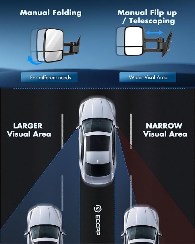 - 🎁【UPGRADED MIRRORS】- The towing mirrors provide better and wider angle of rear view, improves visibility and reduces blind spot. Upgrades on road security.