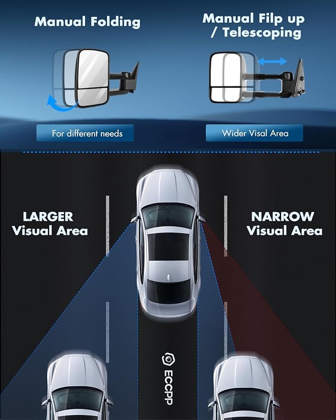 ECCPP Tow Mirrors Manual Telescoping Towing Mirrors Pair Replacement fit for 1999-2006 for Chevy for Silverado for GMC for Sierra Driver and Passenger Side Manual Control No Heated and Light Black