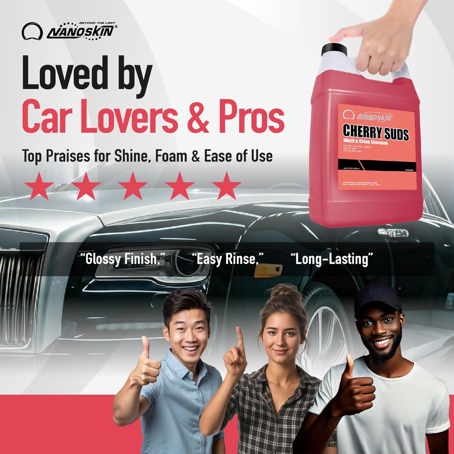 Nanoskin CHERRY SUDS Foaming Car Wash Shampoo 55 Gallons- Works with Foam Cannon, Foam Gun, Bucket Washes, Car Soap for Pressure Washer | Safe for Cars Trucks, Motorcycles, RVs & More | Cherry Scented