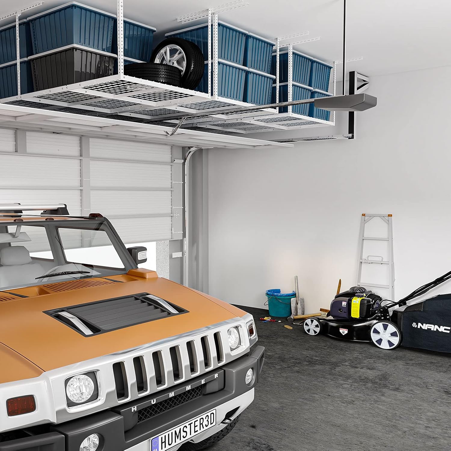 - RECLAIM YOUR GARAGE:Use garage ceiling space to store seasonal and unused items.22"to 40"ceiling dropdown provides up to 80 cu.ft of storage.Dimensions:96 in. L x 36 in. W x 22-40 in. H.(Hooks sold separately)