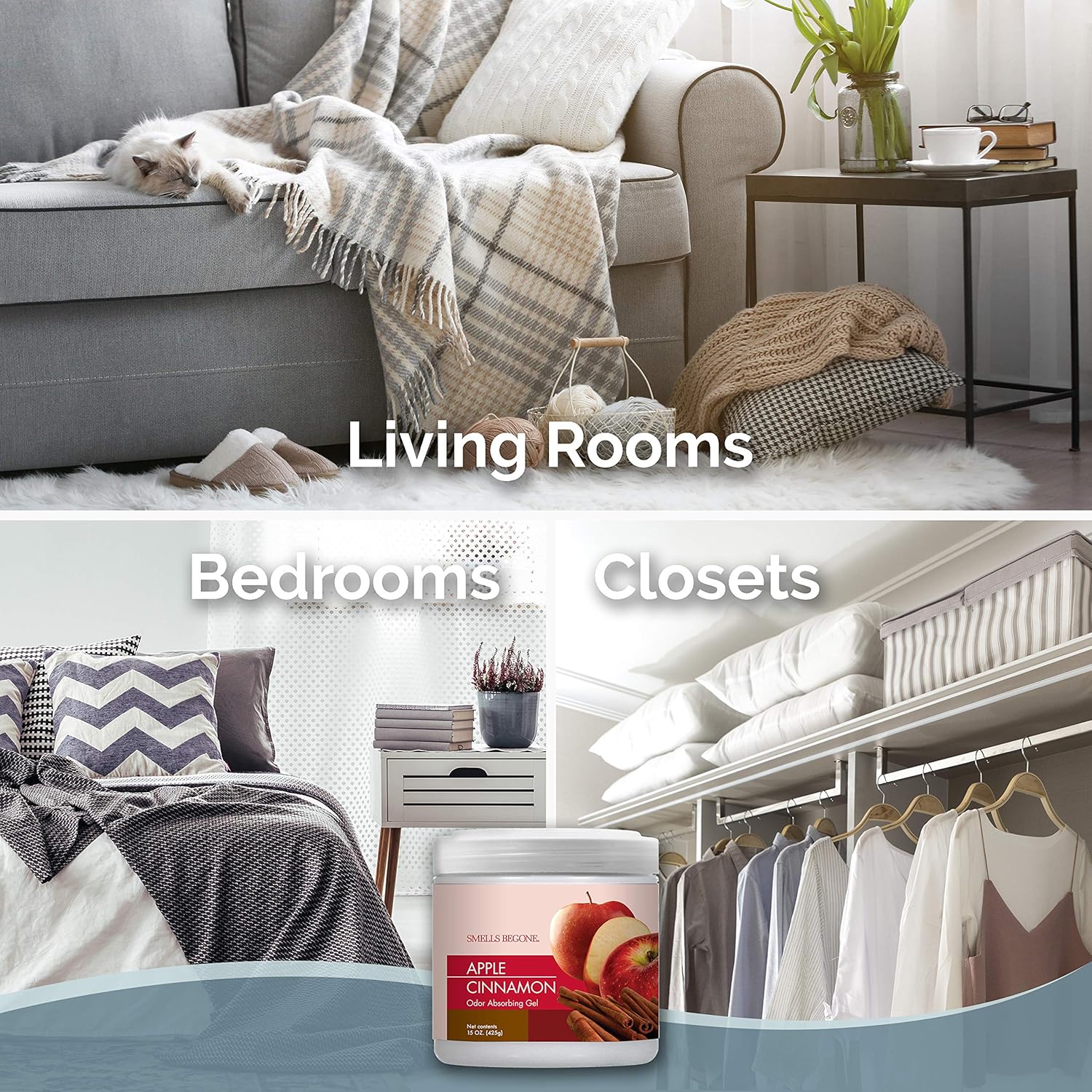 SMELLS BEGONE Air Freshener Odor Absorber Gel - 15 oz, Pack of 2 - Absorbs and Eliminates Odor in Pet Areas, Bathrooms, Cars, & Boats - Made with Essential Oils - Apple Cinnamon Scent