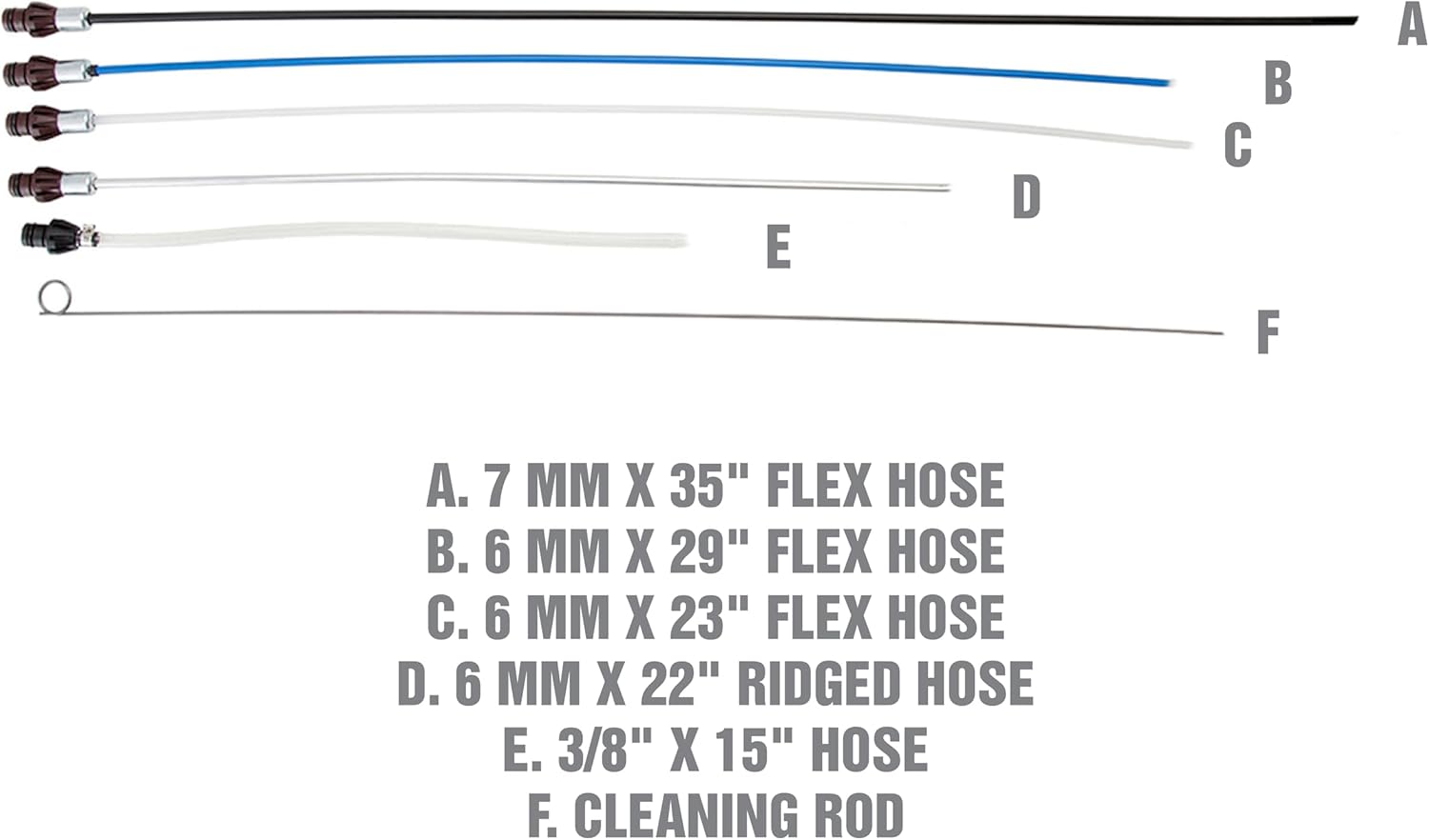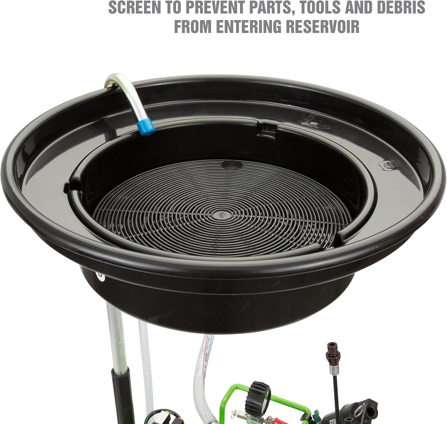 - Product Specifications: Capacity: 80L (21 Gallons); Hose Length: 82 Inches; Funnel Diameter: 15 Inches; Extension Diameter: 22 Inches; Funnel Height Adjustment: 45 Inches to 62 Inches; Casters: 3.5 Inches (2 with Brakes); Max. Air Pressure: 7 PSI