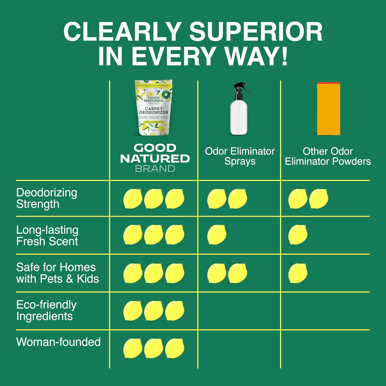 Good Natured Brand | Carpet Deodorizer & Freshener Powder | 31 oz Pet Odor Eliminator for Strong Odor & Pet Urine | Fresh Natural Lemon & Eucalyptus Scent | Safe for Homes with Pets