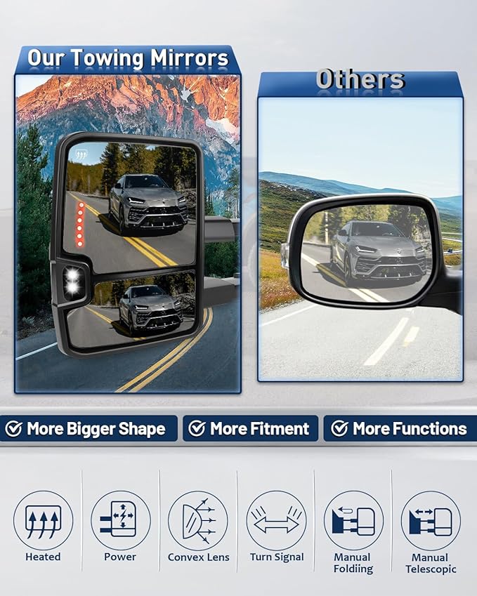 - WHAT YOU GET - A Pair of Towing Mirrors(Include Left Side and Right Side) and 1 Year Warranty Key Product Features