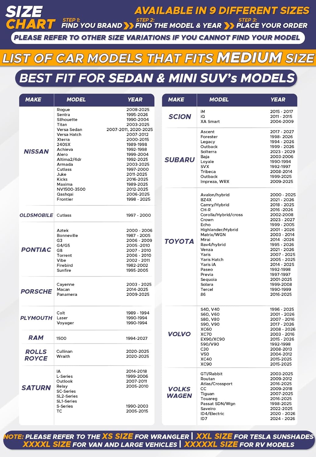 - Choose the Right Fit: Available in multiple sizes, EcoNour’s shades for windows are tailored to fit various vehicle models. Refer to the size chart to pick the best car window shade for maximum protection.