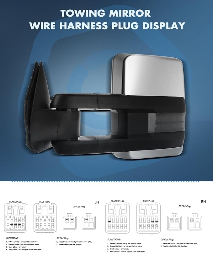 - Special Feature : Manual folding and telescoping,heated,Turn Signal light,Width light,Lens with LED light,with Chrome Housing Manual folding and telescoping,heated,Turn Signal light,Width light,Lens with LED light,with Chrome Housing