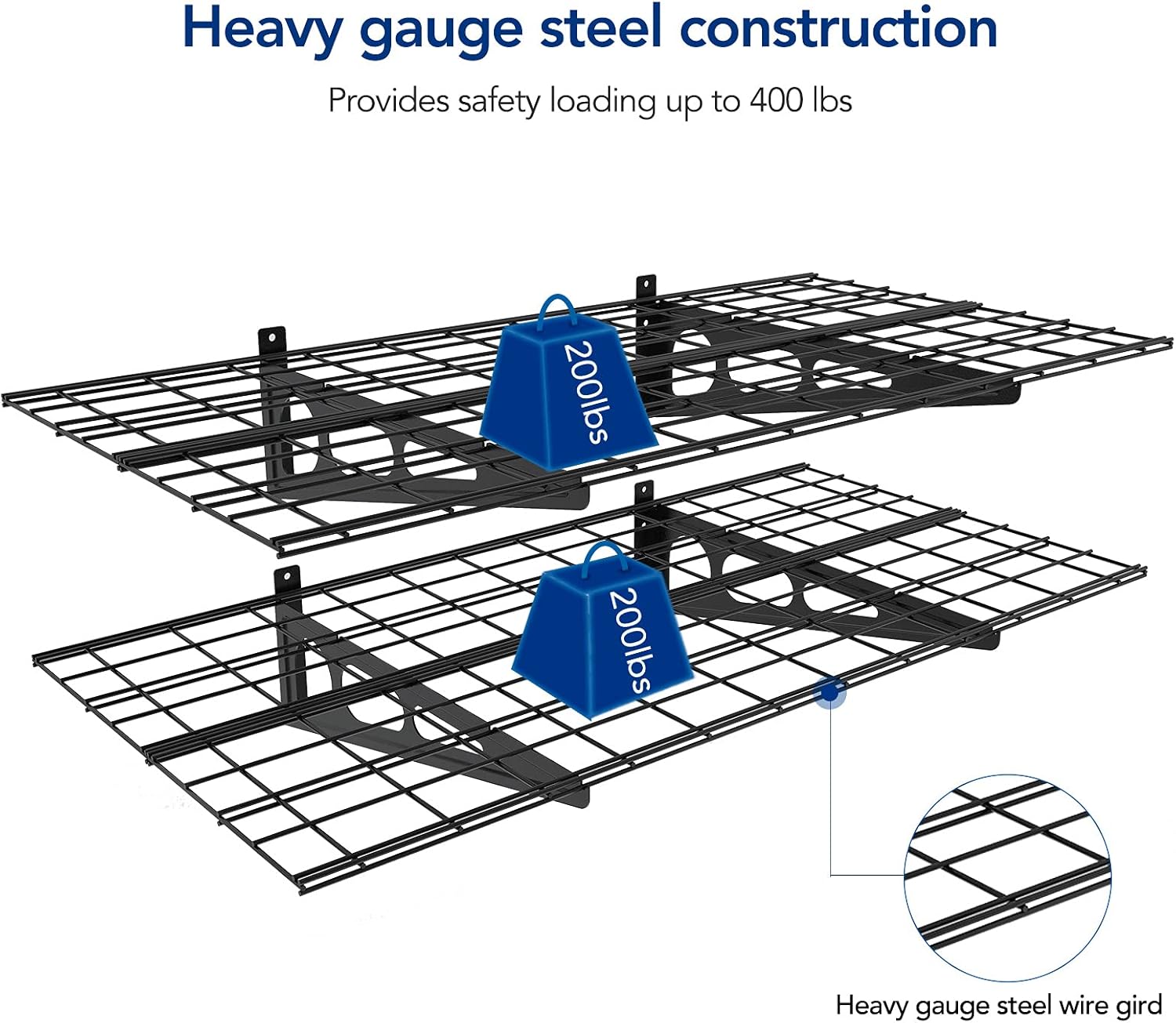 - High Load Capacity: Heavy gauge steel construction provides safety loading up to 400 lbs total.