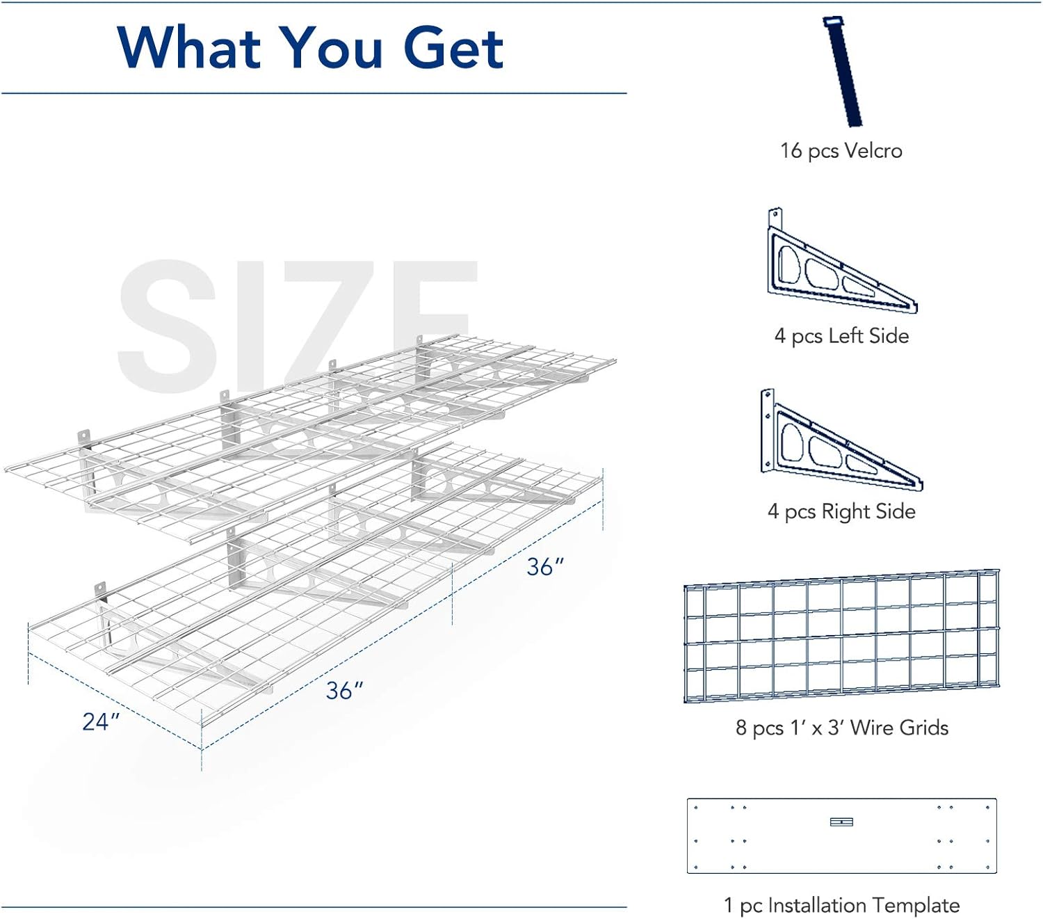 - 1600 lbs Tested, 800 lbs Total Rated Capacity: Our garage wall shelving is rigorously tested to handle a total of 1600 lbs, ensuring unmatched safety and durability. It supports up to 800 lbs in total and 200 lbs for each individual unit.