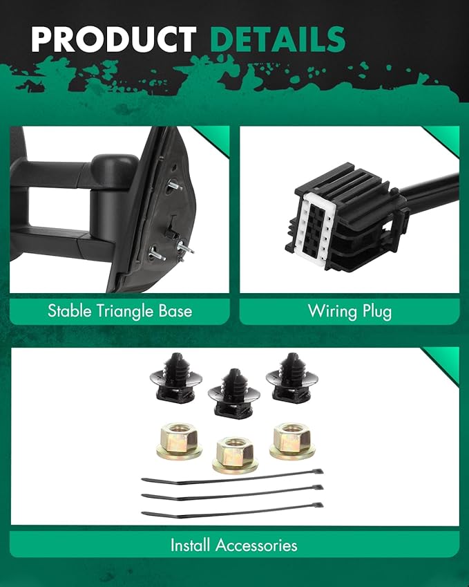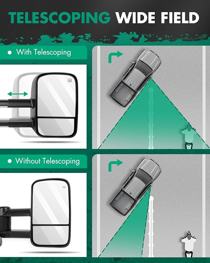 - 🛒【POWER MIRROR ADJUSTMENT】 - The power mirror adjustment will let you change your mirror face position with the factory controls inside your vehicle