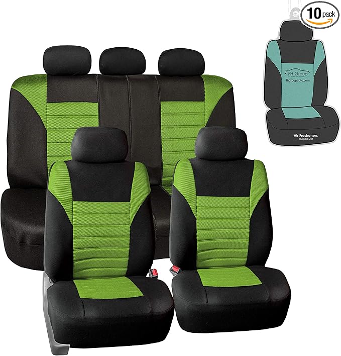 FH Group Automotive Car Seat Covers Full Set Premium 3D Air Mesh Front Seat Covers, Airbag Compatible & Split Bench Cover Universal Fit Interior Accessories for Cars Trucks and SUVs - Green