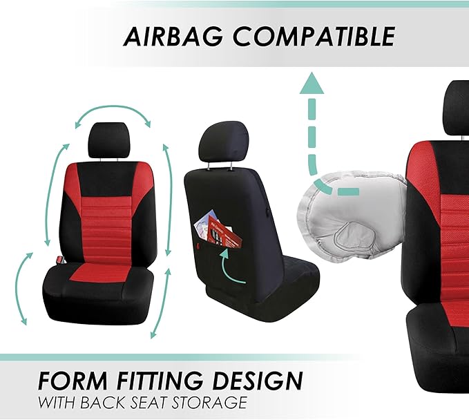 FH Group Automotive Car Seat Covers Front Set Premium 3D Air Mesh Front Seat Covers, Airbag Compatible Universal Fit Interior Accessories for Cars Trucks and SUVs - Red
