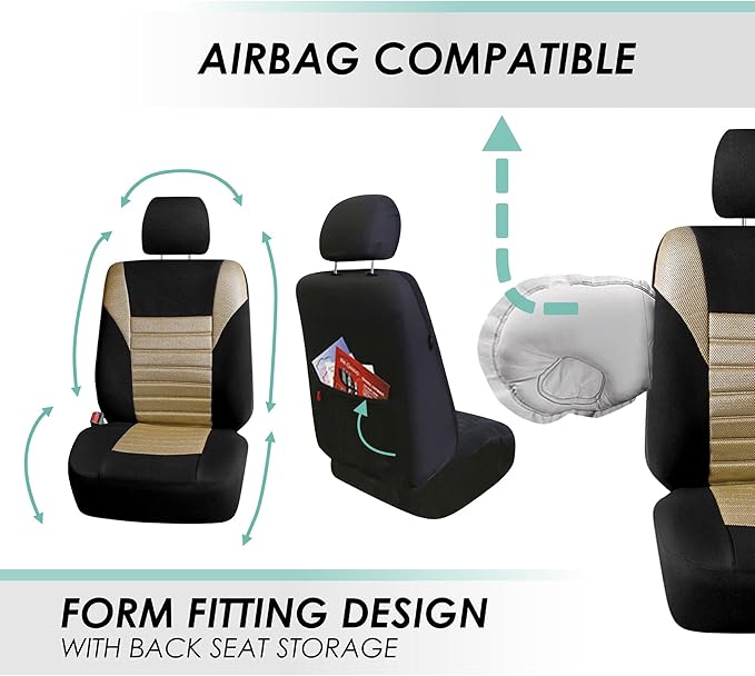 FH Group Automotive Car Seat Covers Front Set Premium 3D Air Mesh Front Seat Covers, Airbag Compatible Universal Fit Interior Accessories for Cars Trucks and SUVs - Beige