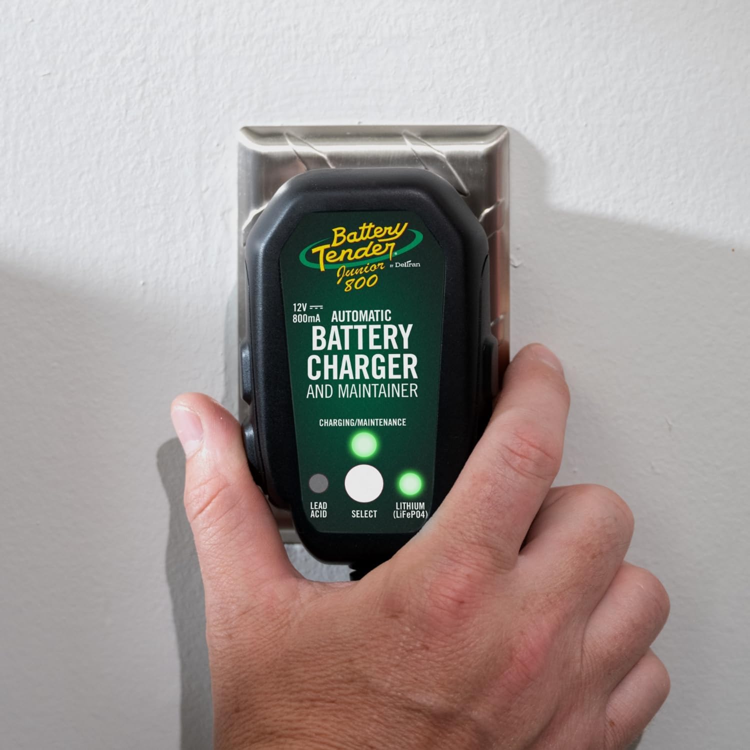 Battery Tender Junior 12V, 800mA Battery Charger and Maintainer for Lead Acid and Lithium Batteries - Switchable Battery Charger for Powersports - 022-0199-DL-WH