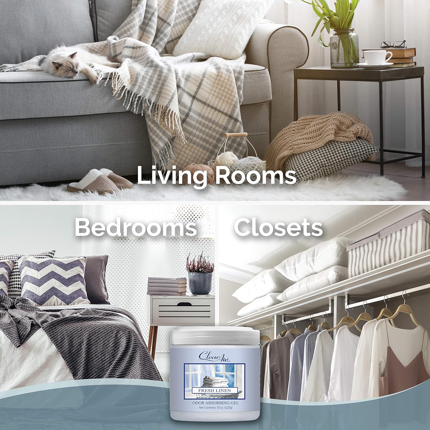 Clear Air Odor Absorber Gel - 15 oz, Pack of 2 - Air Freshener Absorbs and Eliminates Odors in Bathrooms, Cars, Boats, RVs and Pet Areas - Made with Essential Oils - Fresh Linen Scent