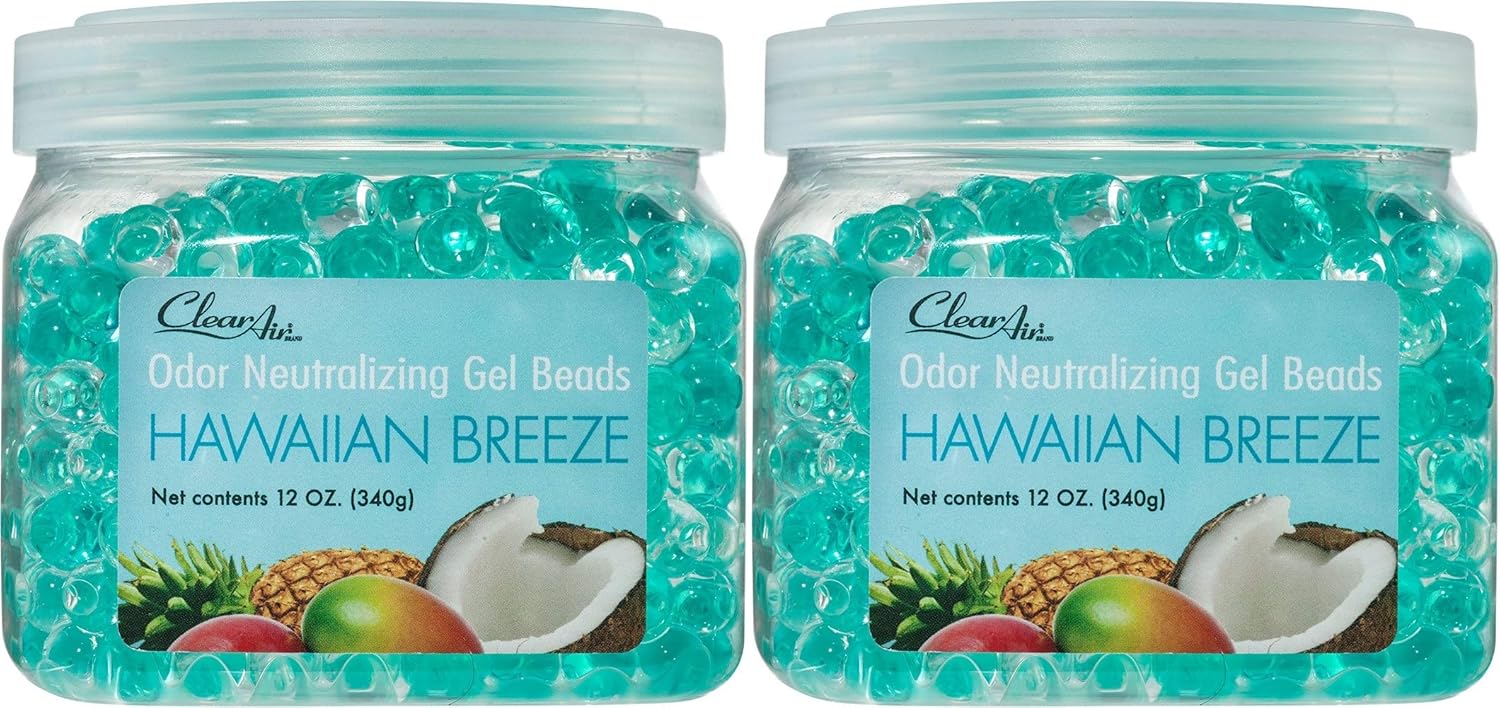 Clear Air Odor Eliminator Gel Beads - 12 oz, Pack of 2 - Air Freshener Made with Essential Oils - Eliminates Odors in Bathrooms, Cars, Boats, RVs & Pet Areas - Hawaiian Breeze Scent