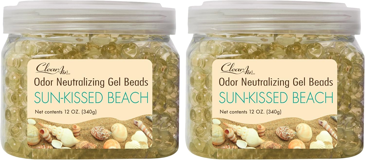 Clear Air Odor Eliminator Gel Beads - 12 oz, Pack of 2 - Air Freshener Made with Essential Oils - Eliminates Odors in Bathrooms, Cars, Boats, RVs & Pet Areas - Sun-Kissed Beach Scent