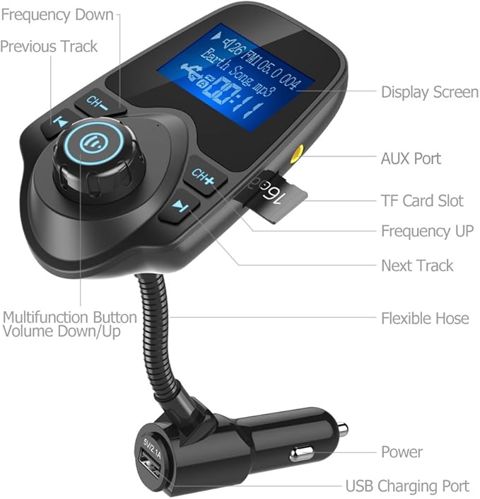 - Wide Compatibility: FM modulator transmitter is compatible with most devices, such as iPad, iPhone, iPod, MP3 player, tablet and Android Smartphones. You can play your favorite songs on car stereo via Bluetooth, TF Card and Aux Cable. And it fits 12V-24V cars and trucks.