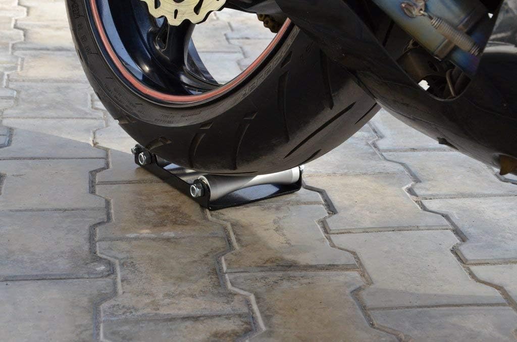 - Multipurpose Use: Designed for tire cleaning, chain lubrication, checking tire pressure, and other maintenance tasks, this wheel roller stand ensures smooth bike upkeep. This tool for motorcycle owners, facilitating maintenance at home and on the go.