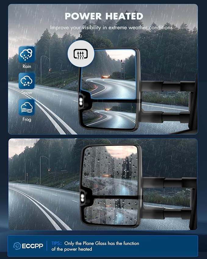 ECCPP Towing Mirrors Pair Side Replacement Fit For 2003-2007 For Chevy For Silverado For GMC For Sierra Power Heated Signal Light Width Light Chrome Cap Left And Right Side Tow Mirrors