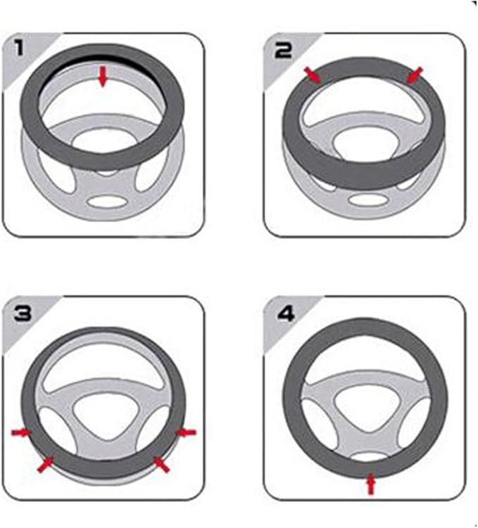 - Easy to install, slips right on steering wheel and instantly improves the appearance of old or dirty steering wheels. It may be a bit tight when installing, but it can be done with a little effort.You can refer to the installation method diagram. In addition, it is folded in half to ship. There may be a little crease when you just get the items. But don't worry, we have tested it, as long as it stretches out, crease will slowly disappear.