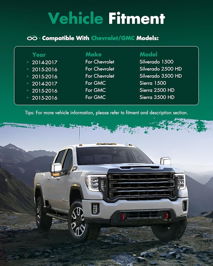 - 🎅TOWING MIRRORS FIT - 2014 2015 2016 2017 2018 For Chevy For Silverado/For GMC For Sierra 1500 2015 2016 2017 2018 For Chevy For Silverado/For GMC For Sierra 2500 HD 3500HD