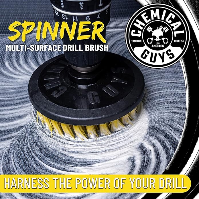 Chemical Guys Foaming Citrus Fabric Clean and Drill Brush Kit - High Foaming Stain and Odor Remover for Car Carpets, Upholstery, and Floor Mats, Deep Cleans and Deodorizes, Citrus Scent - 16 oz
