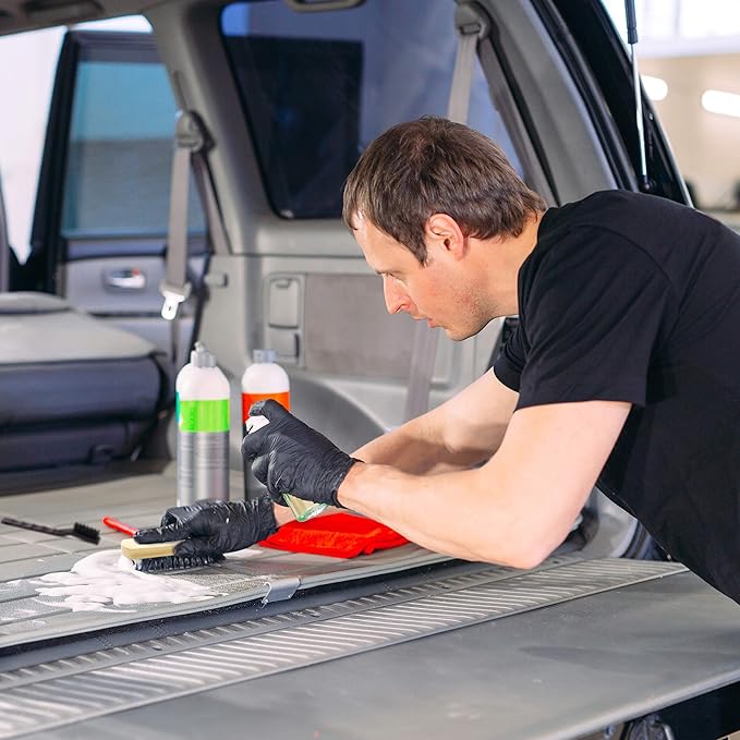 - High Quality Material - Produced to meet the highest standards, premium quality synthetic nylon bristles are chemical-resistant and built to last for years of rugged detailing use. It is strong enough to clean tough jean stains or pen stains & gentle enough to keep your leather, vinyl, microfiber and plastic interior safe.