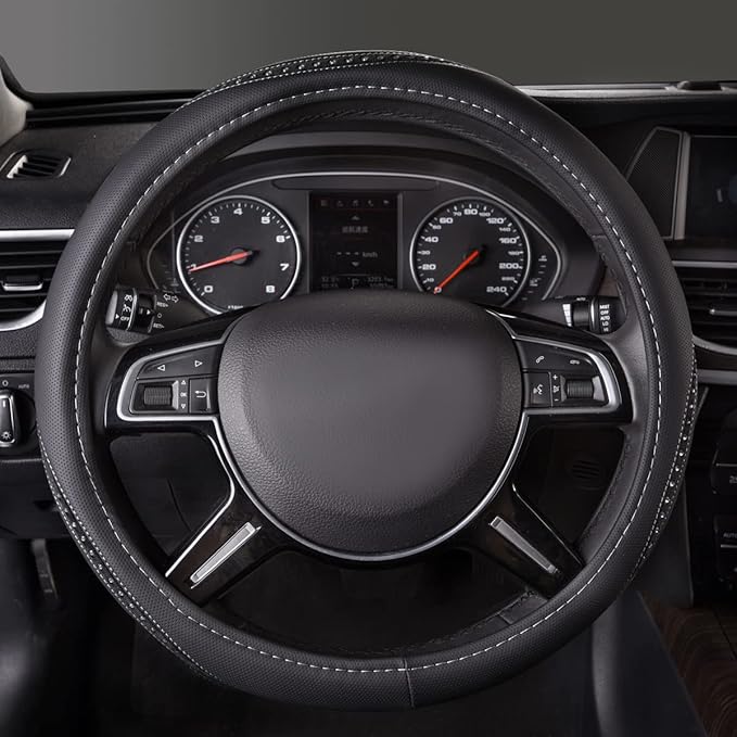 - STANDARD SIZE FITS MOST VEHICLES: Package Contains: 1*bling steering wheel cover. The bling diamond steering wheel cover measures 14"1/2-15". Suitable for 95% of cars. Flexibly, easy to install. The distribution of anti-slip rubber points inside effectively ensures safe driving. washably. Beautiful and sturdy packaging to safely ship the bling steering wheel cover to you.