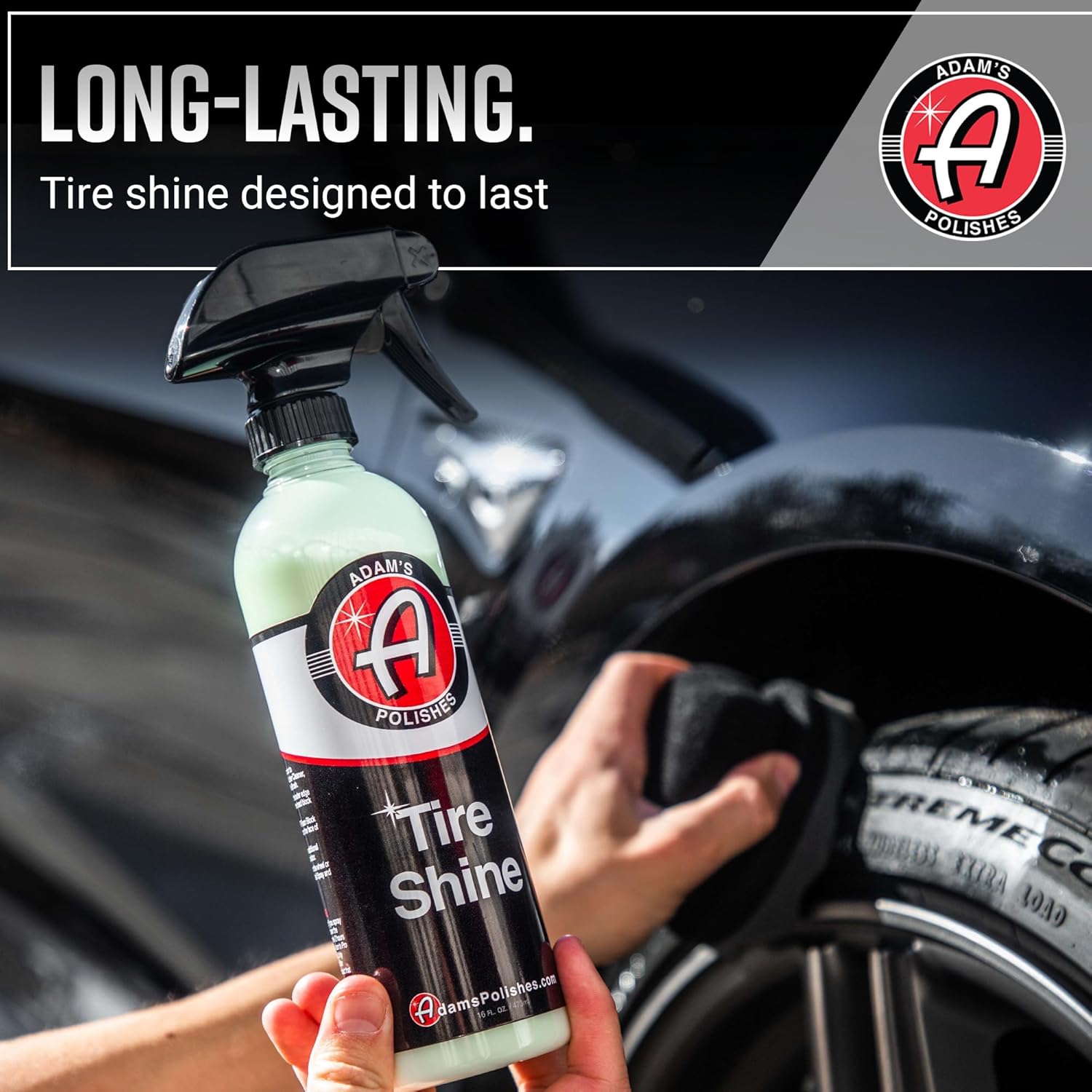 - ✅ A LONG LASTING FORMULA UNLIKE ANY OTHER - Adam’s Tire Shine is a silicone-based, sprayable tire dressing that is designed to lay evenly and dry to the touch in minutes. Now with added silica-resins, this same great formulation has increased longevity and durability to keep your ride looking detailed for longer! Adam's Tire Shine is not greasy and will not run when properly applied on tires.