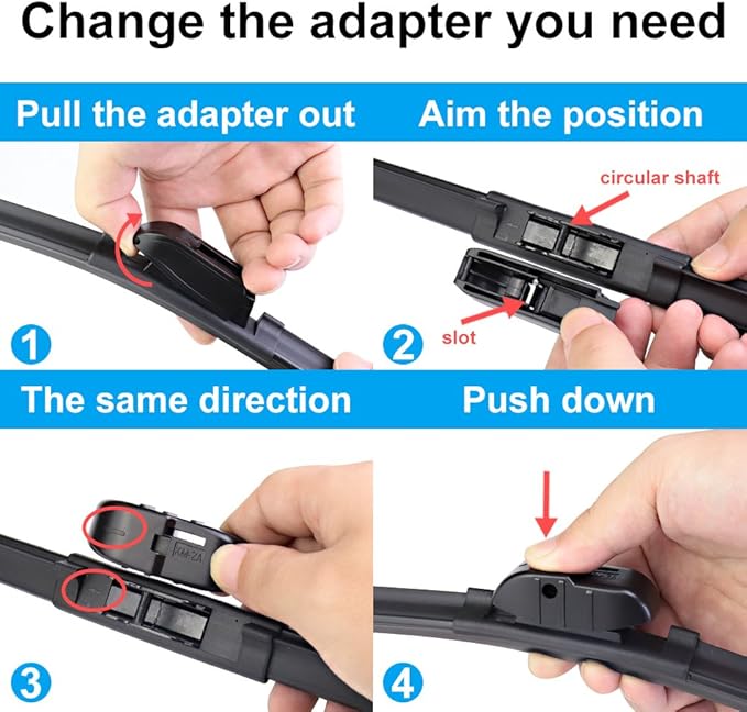 - 【Presenting an Extra Pair of Refills】:1 pair of windshield wiper blades and an extra pair of refills for our wipers,remember to choose the right adapter according to your arm type