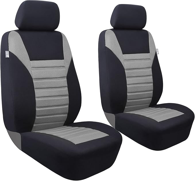 FH Group Gray Polyester Car Seat Cover, 3D Air Mesh, Front Set, Airbag Compatible, Universal Fit for Cars Trucks SUVs