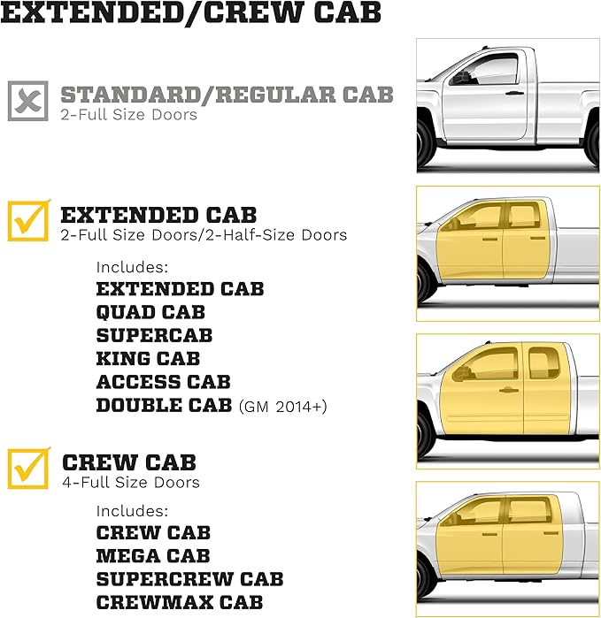 - CUSTOM FITMENT | Fits 2019 - 2026 Chevrolet Silverado & GMC Sierra 1500 CREW CAB/DOUBLE CAB & 2020 - 2026 Chevrolet Silverado & GMC Sierra 2500/3500 CREW CAB/DOUBLE CAB - NOTE: SEE IMAGES to confirm your correct CAB SIZE