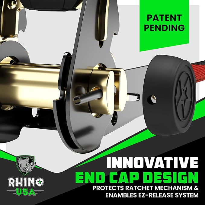 - RHINO EZ-RELEASE SYSTEM - Features a User-Friendly Design That Allows for Quick and Easy Strap Release, Enhanced by our Patented End Cap that Protects the Ratchet Mechanism, Saving Time During Loading and Unloading.