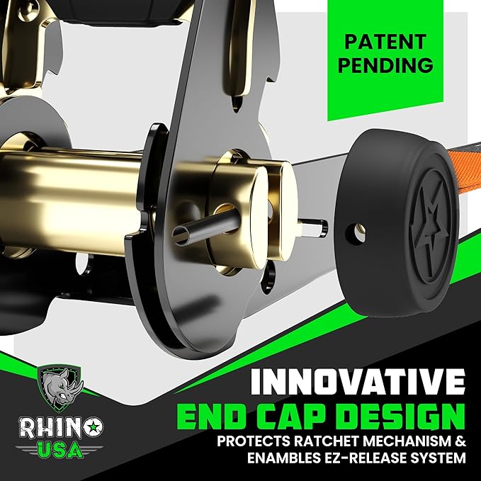 - RHINO EZ-RELEASE SYSTEM - Features a User-Friendly Design That Allows for Quick and Easy Strap Release, Enhanced by our Patented End Cap that Protects the Ratchet Mechanism, Saving Time During Loading and Unloading.