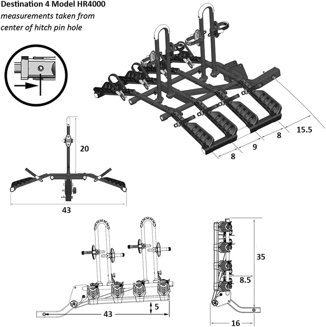 Hollywood Racks Destination 4 Hitch Bike Rack, Lightweight, Black - Platform Style Bike Rack for Car Carries up to 4 Bikes for Safe, Secure Transport - Fits Most Bike Styles, Sizes and Models