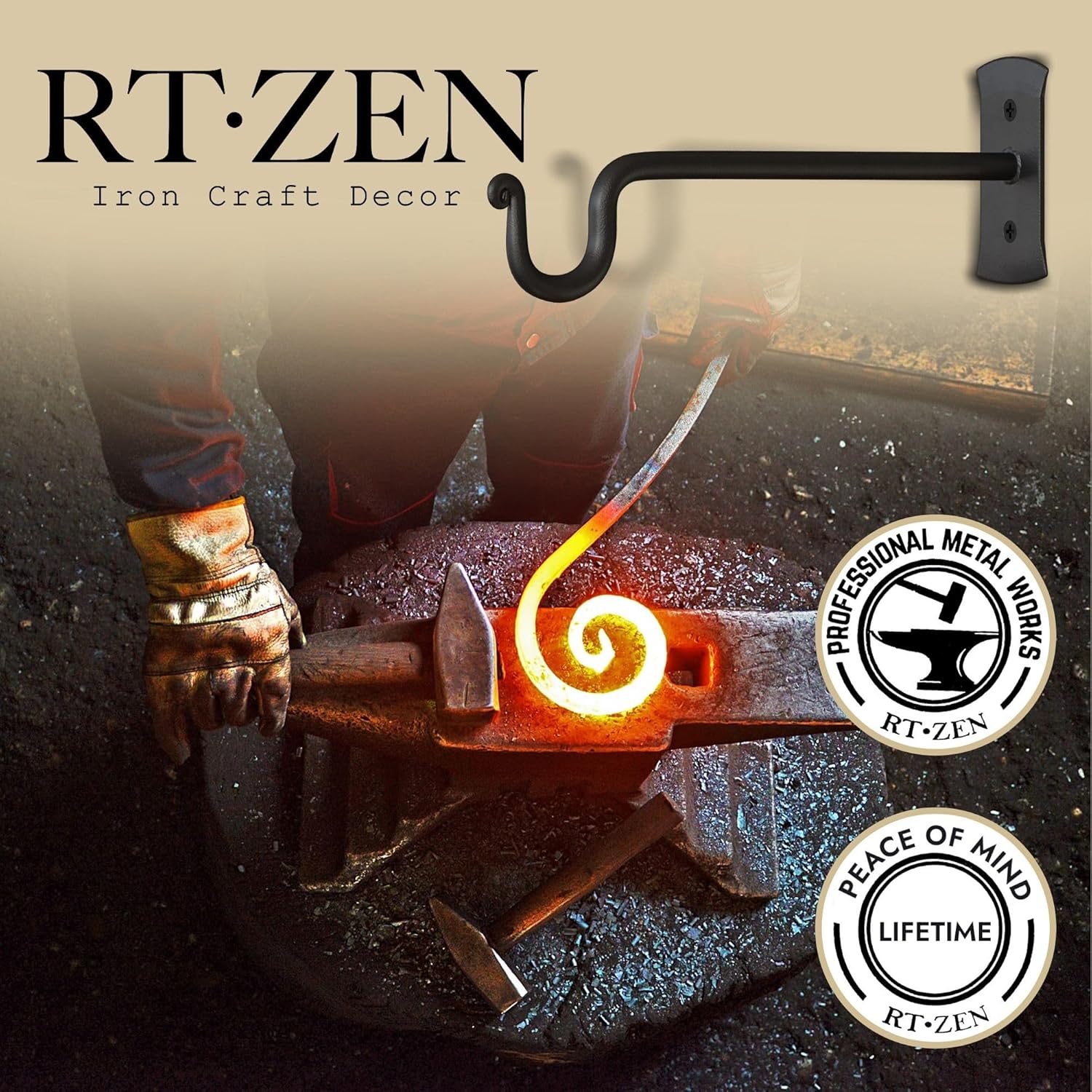 RTZEN Plant Hangers Outdoor or Indoor - Wrought Iron Metal Hanger Indoor Hook - Heavy Duty Wall Bracket Hooks for Hanging Plants Baskets Lanterns Wind Chimes - 2 Pack (Black Shepherds Hooks)
