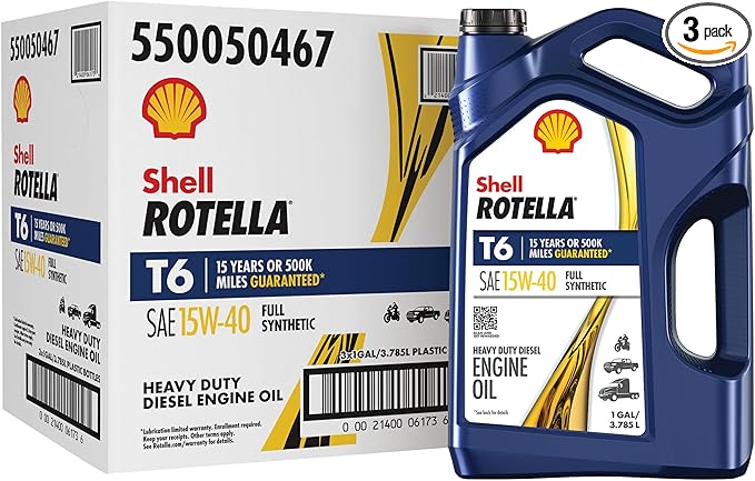 - Limited warranty valid up to 15 years or 500,000 miles (whichever comes first) if you exclusively use Shell Rotella T6 Full Synthetic Technology heavy-duty engine oil*