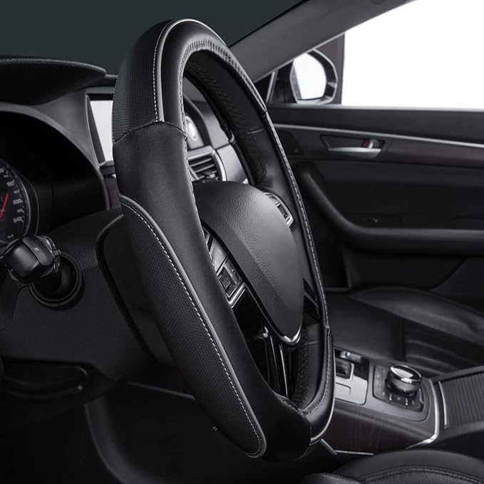- SPORTY DESIGN WITH PIPING COLOFUL LEATHER:Feel Very comfortable when driving.Protect your hands from burning hot steering wheels in summer and ice cold ones in winter.