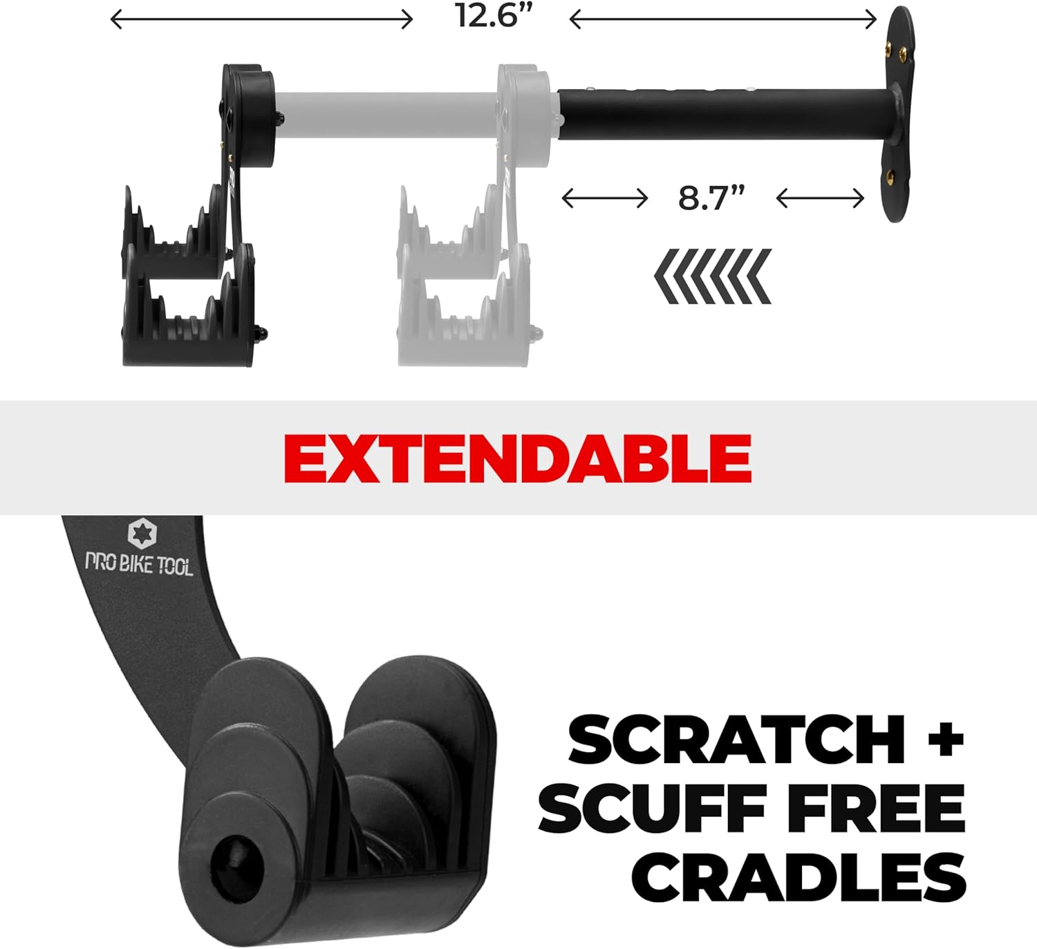 PRO BIKE TOOL Bike Rack Garage Wall Mount - Durable Alloy Bicycle Storage System with Adjustable Bike Hook Hanger for Indoor Use - Ideal for Road, MTB, and Hybrid Bikes - Holds Up to 48.5 lbs, Black