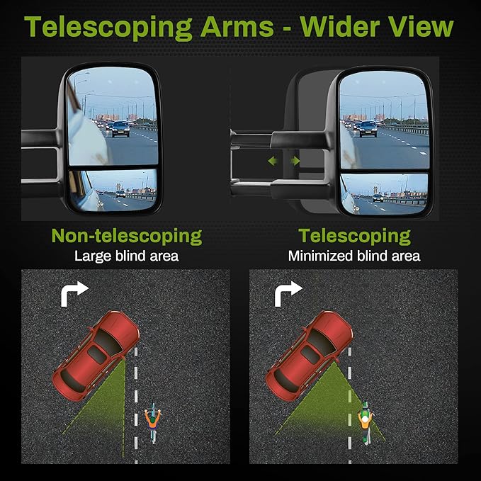 - Telescoping & folding:it can be manually extended to help you identify vehicles and surroundings that might be in a blind spot, manual folding can better protect the mirrors