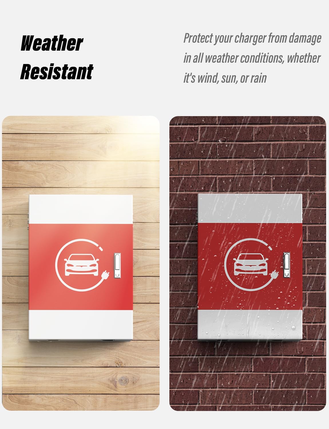 - 【Durable & All-Weather Protection】Made from cold-rolled steel, this EV charger box undergoes precision cutting and welding to ensure superior durability. It is built to withstand rain, snow, and UV exposure, providing long-lasting outdoor protection for your Tesla wall connector gen 3