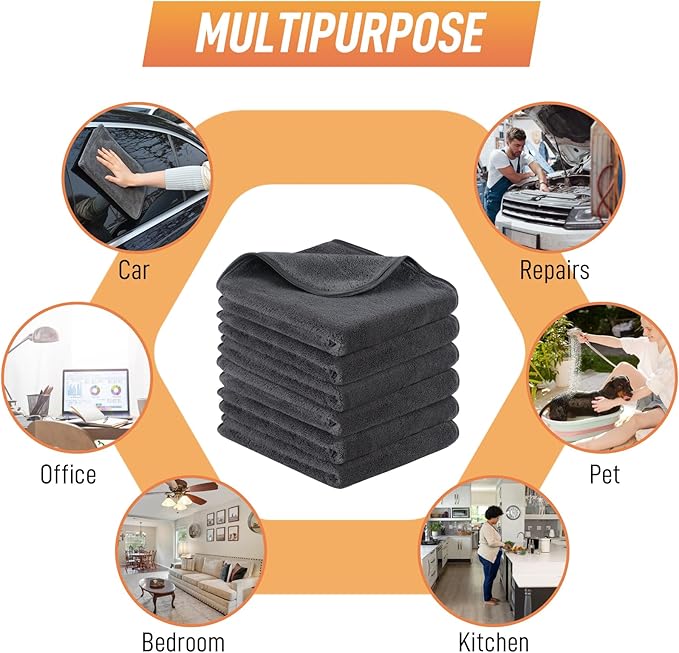 - SUPER SOFT & HIGHLY ABSORBENT: These microfiber car towels are super absorbent and dry quickly,leaving your car's finish spotless.Save time and effort by using this double-sided soft and plush car microfiber drying towel that has been tested to absorb more water than what you may expect