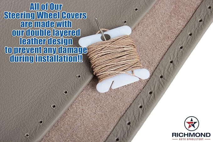 - Goes over your existing Leather Steering Wheel & will be sewn on with the Needle & Lacing Cord that we provide you with!!