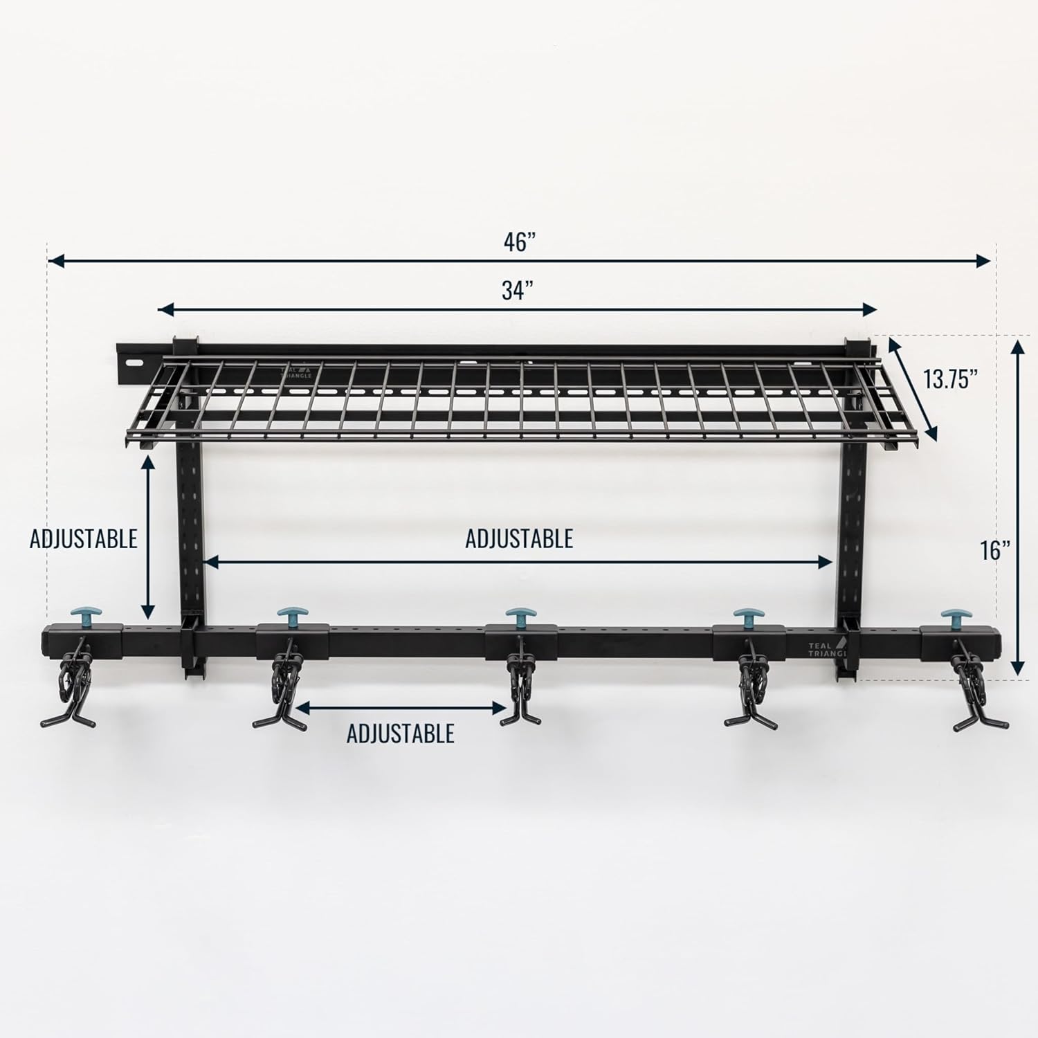 StoreYourBoard Lone Peak Ski Storage Rack and Wall Shelf, Holds 5 Pairs of Skis and Poles, Supports 300 lbs, 46 in x 13.75 in x 16 in